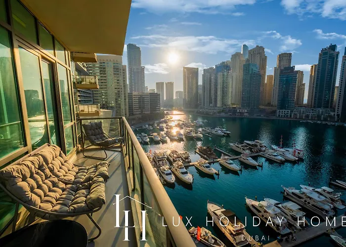 Просторные Lux The Majara Marina View Suite с бассейном расположены в 5 минутах езды на машине от Гольфа-поля Montgomerie в Дубае. Среди достопримечательностей, расположенных рядом с апартаментами, - башня Алмас, которая находится в 5 минутах ходьбы.